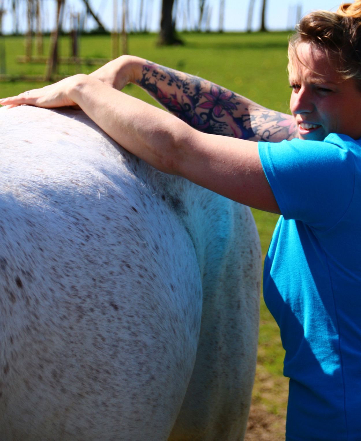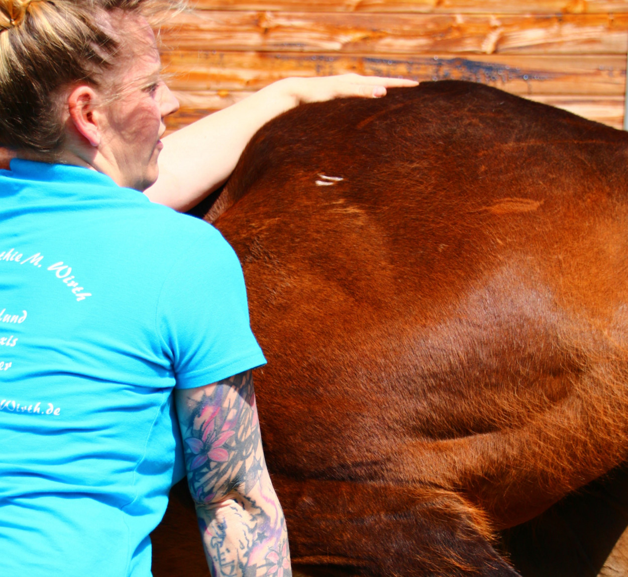 So weit so gut. Ich als Osteopathin schaue ganzheitlich auf unseren Partner Pferd und gehe nachdem ich mir einen Überblick über das Gangbild gemacht habe auf Auffälligkeiten im Anamnesegespräch ein. Ich möchte unter anderem von Ihnen wissen, wie Sie das Pferd reiten, ob es kürzliche Veränderungen im Bewegungsapparat gab und beginne dann mit meiner Behandlung.