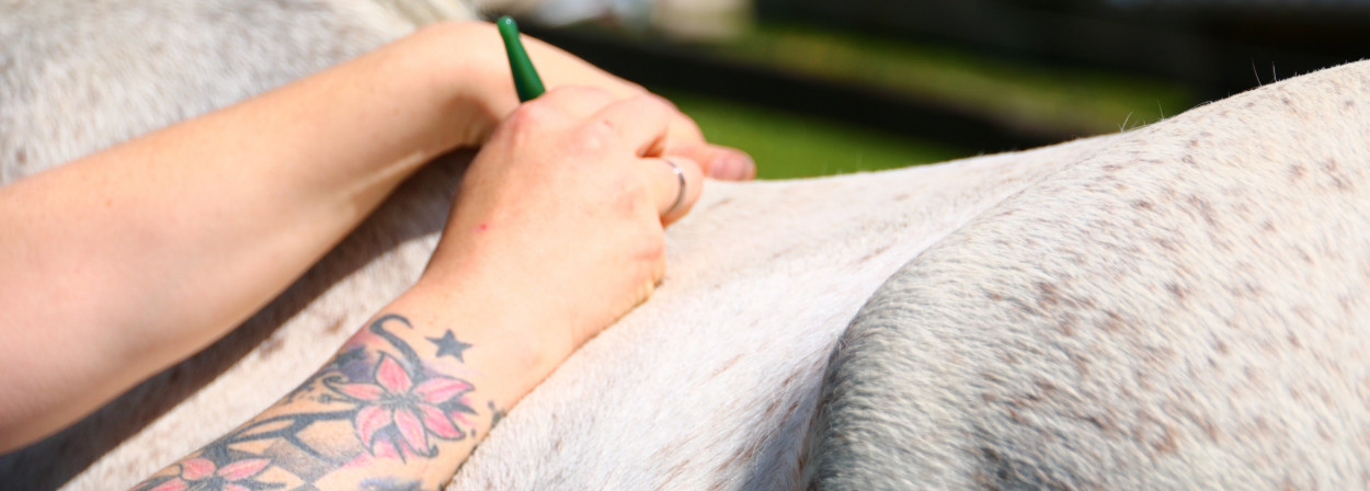 Zum Abschluss der Behandlung freue ich mich auf eine erneute, kurze Vorstellung an der Longe, um Gangbild und allgemeine Verbesserung zu prüfen und zu besprechen. Gerne setze ich abschließend und wenn gewünscht Akupunkturnadeln die die Wirkung der osteopathischen Behandlung unterstützen und den Energiefluss des Körpers regulieren.